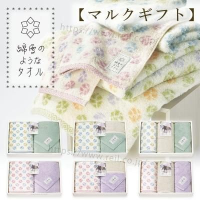 タオルギフト フェイスタオル 1枚 ウォッシュタオル 1枚 セット 無撚糸 ドット 小枝柄 【綿雪のようなタオル マルク マルクギフト WYT-1692】