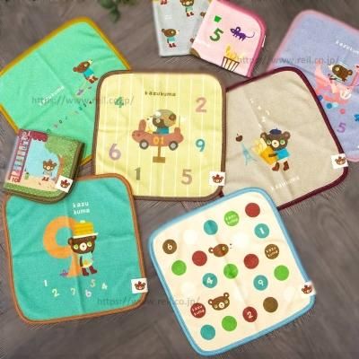 絵本のキャラクター【かずくま】 タオルチーフ タオルハンカチ 無撚糸使用 (ワッペン)
