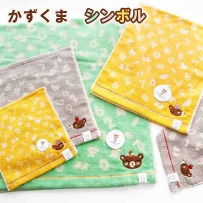 絵本のキャラクター【かずくま】 ウォッシュタオル ハンドタオル 無撚糸使用 (ワッペン)