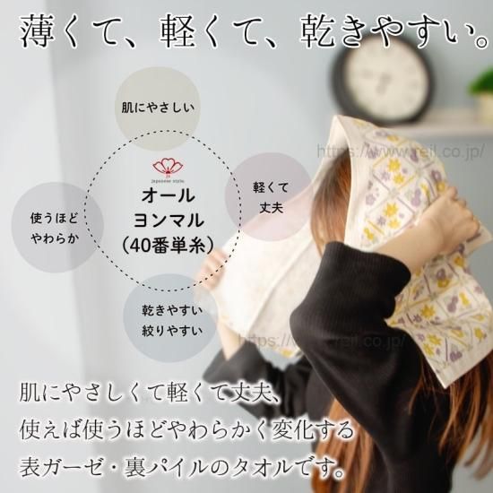 通常のガーゼタオルより細い40番手単糸を使っているため、