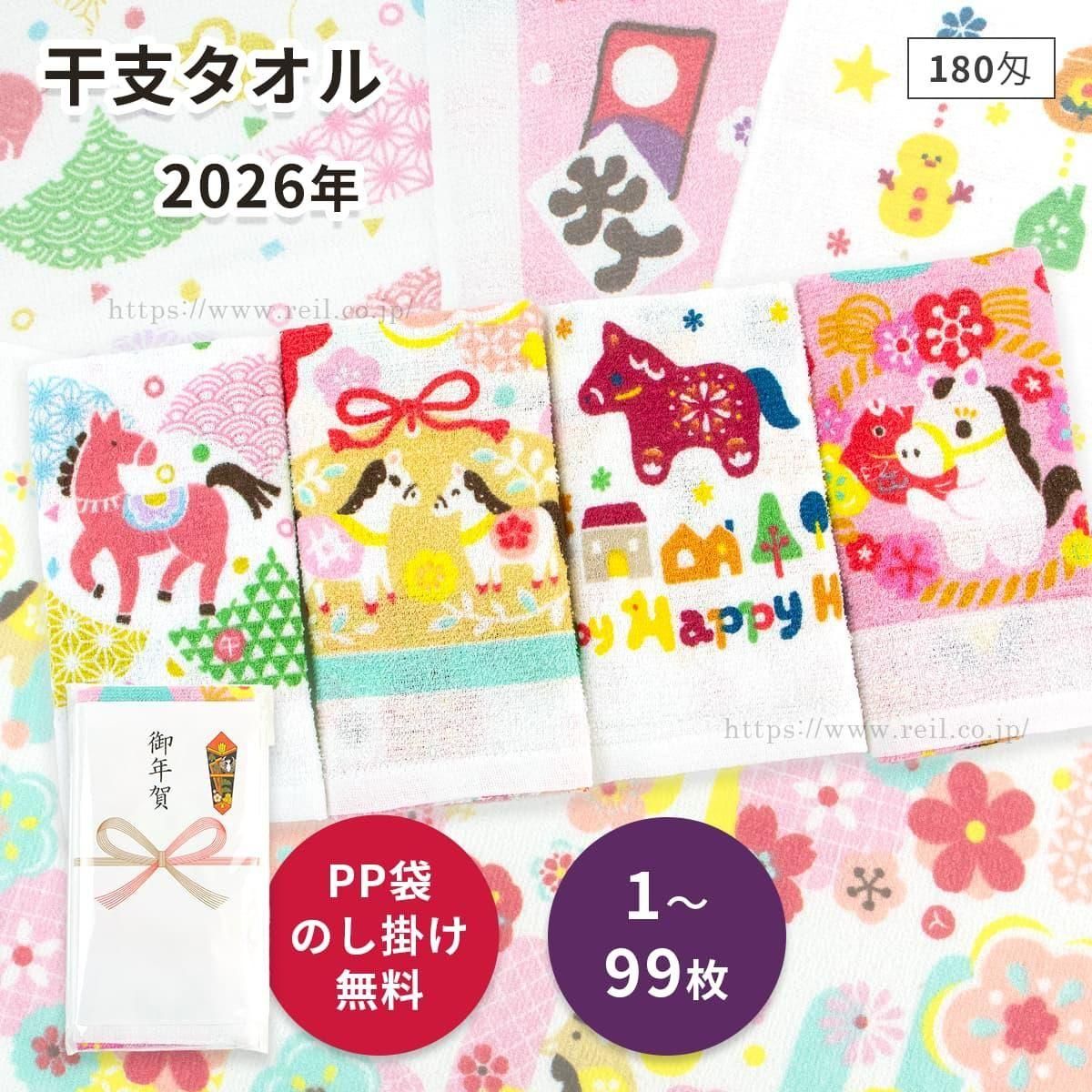 【1枚~99枚】干支タオル お年賀タオル フェイスタオル 巳 2026年 午年 うま 馬 袋入 熨斗掛け