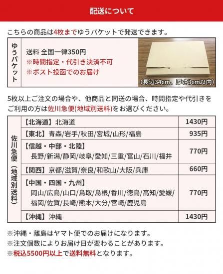 ※4枚以下の場合も、時間指定や代引き決済をご希望の方は「佐川急便」をお選びください。