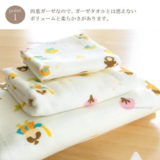 ◇特長/日本製、綿100%、無撚糸使用、四重両面ガーゼ、プリント、大阪泉州ガーゼタオル
