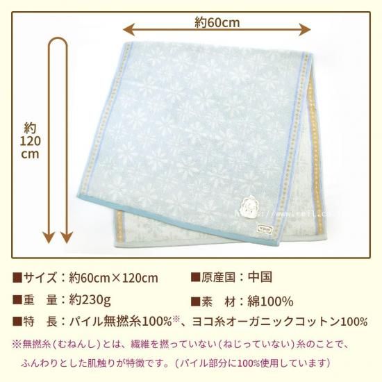◇特徴/綿100%、パイルは無撚糸100%、ヨコ糸はオーガニックコットン100%、ジャカード、中国製