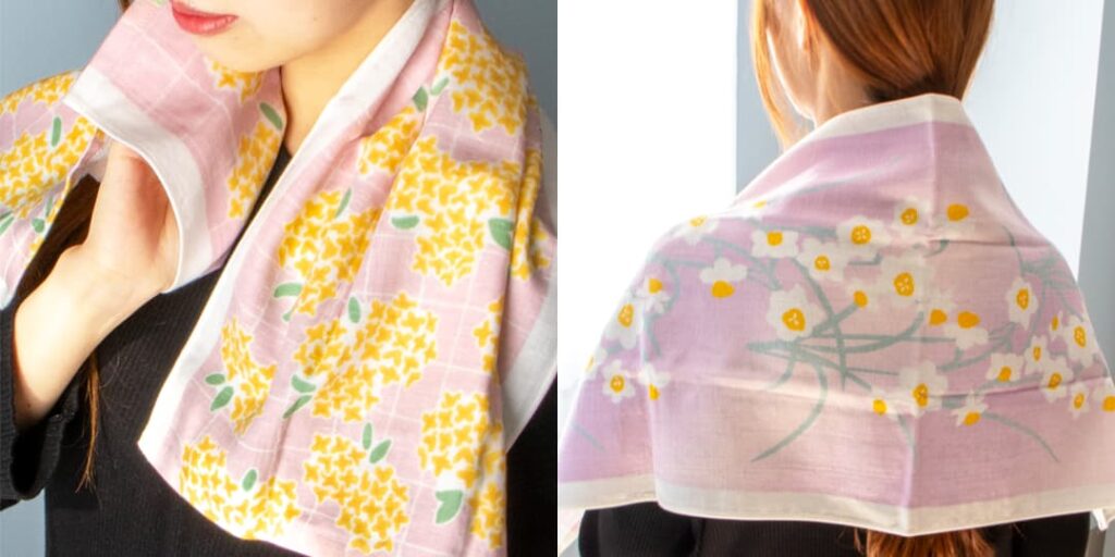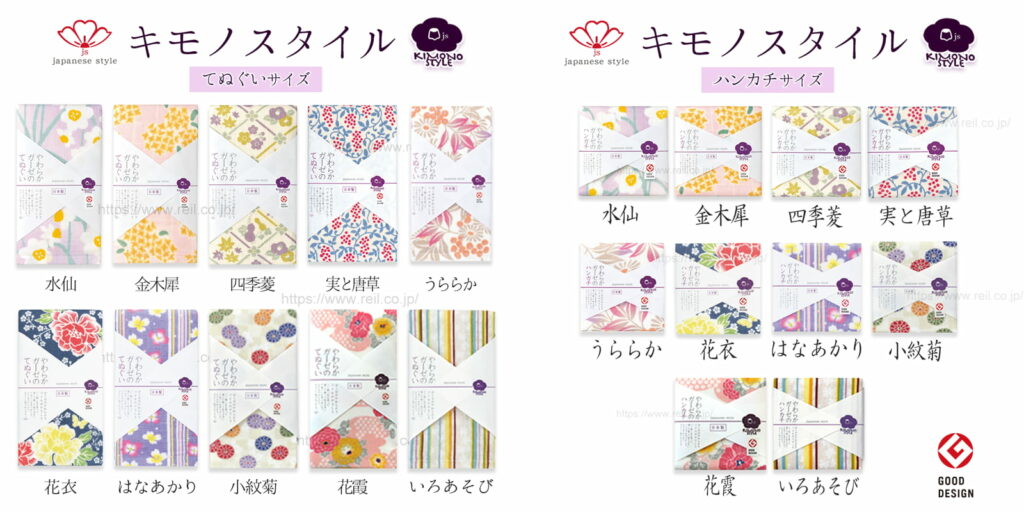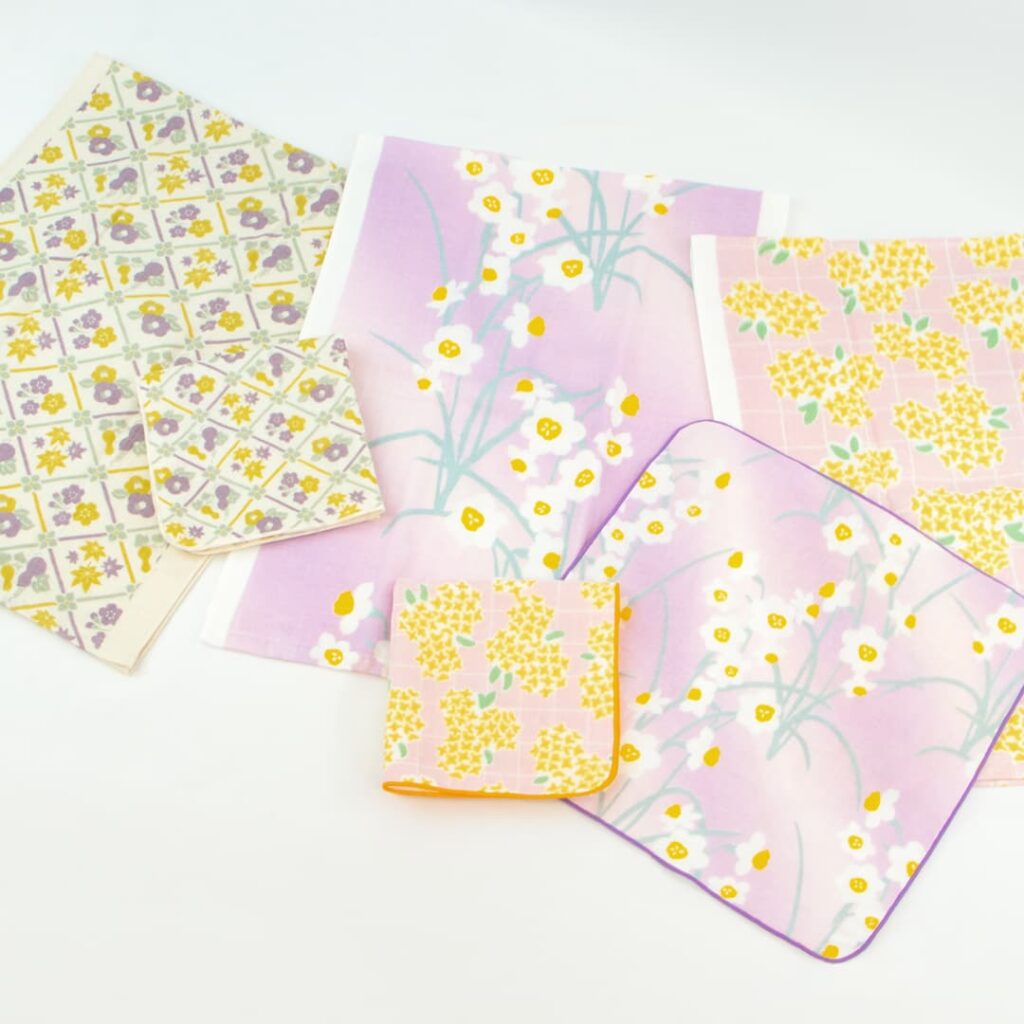 てぬぐいサイズとハンカチサイズがあります。