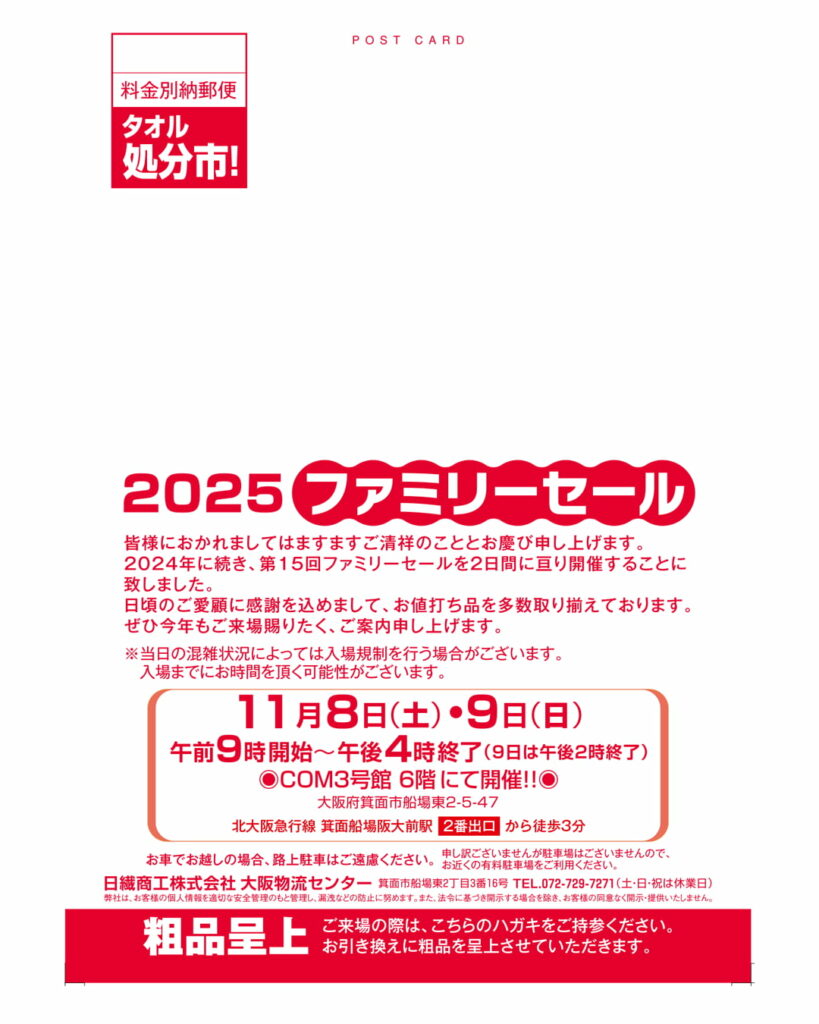 毎年大盛況をいただいております本ファミリーセールの告知です。