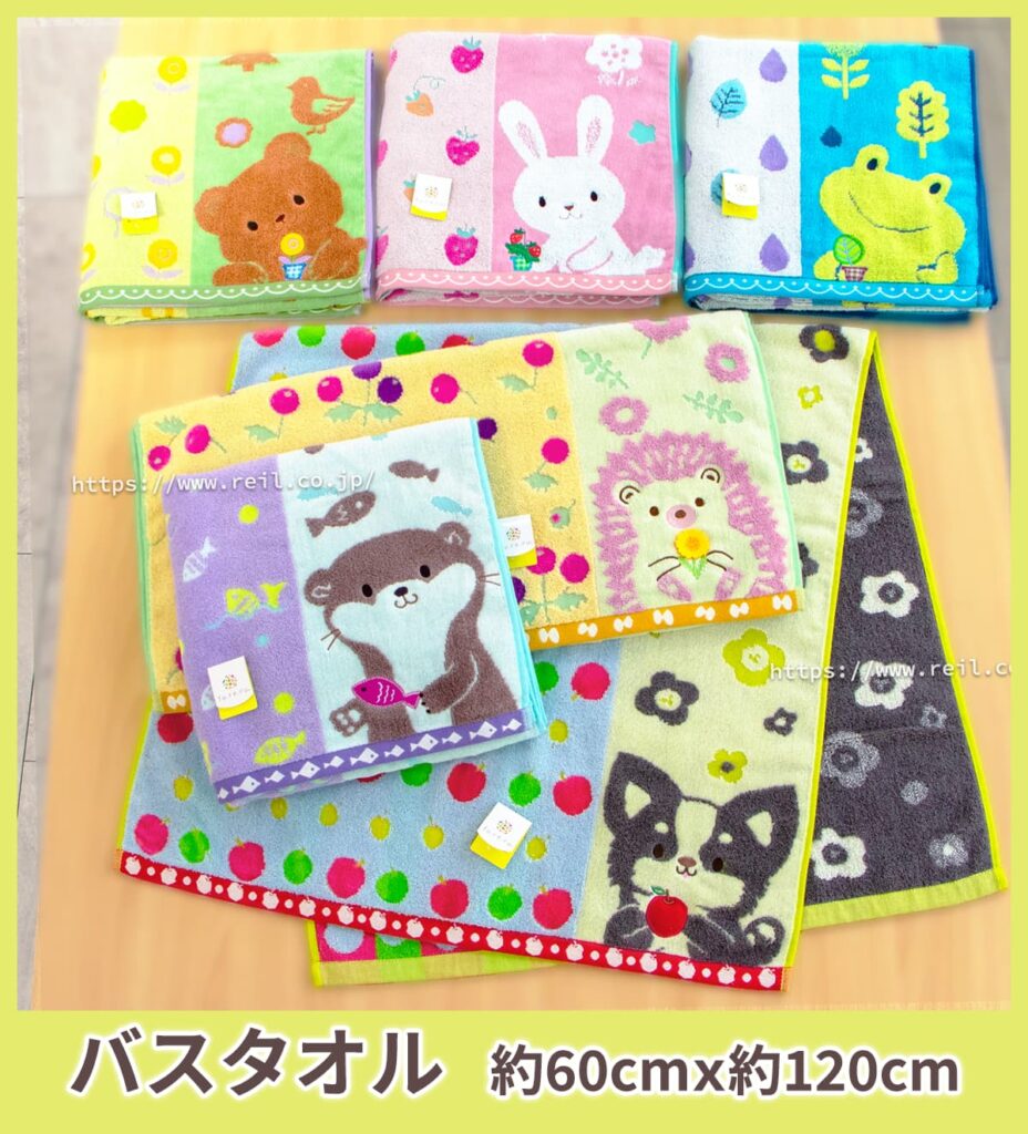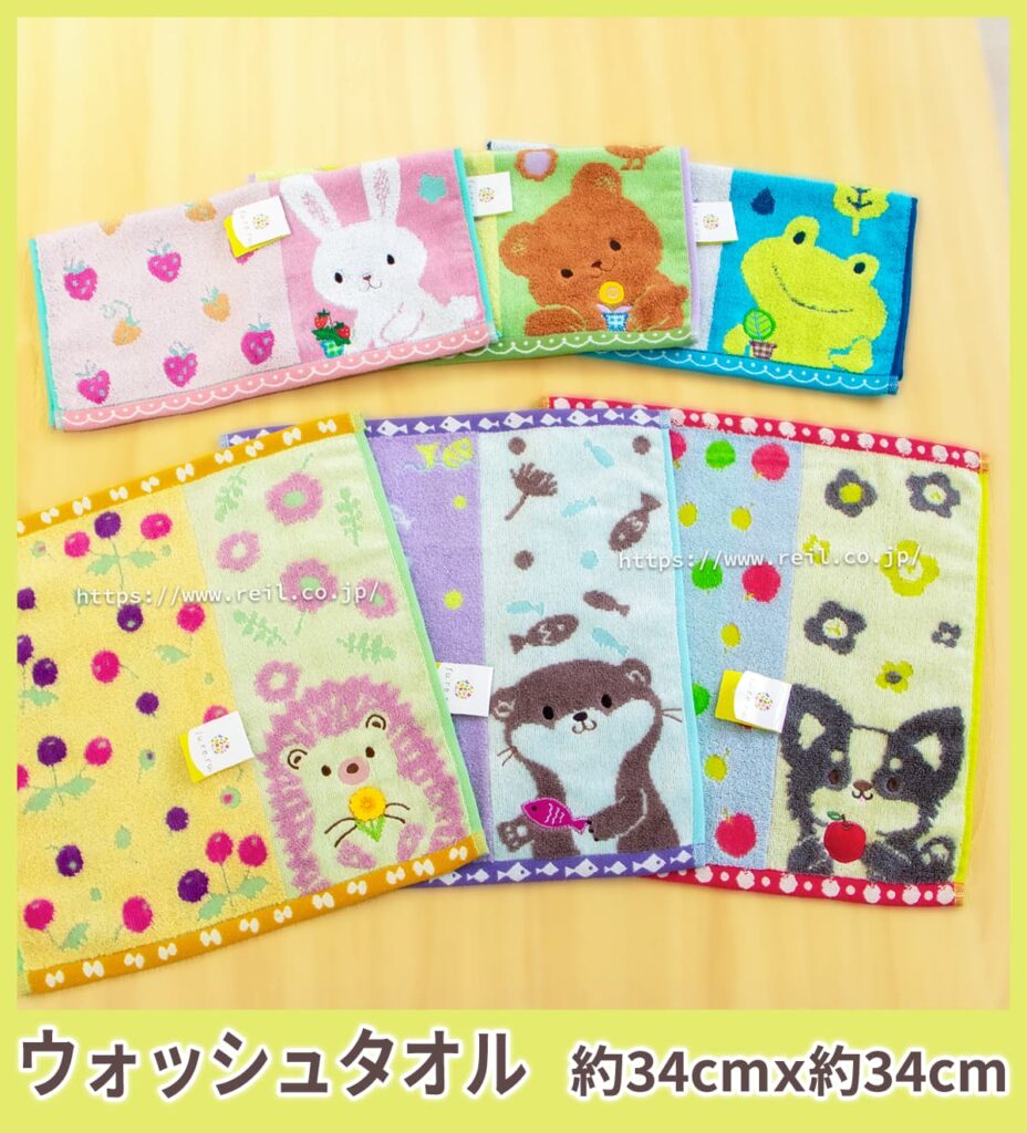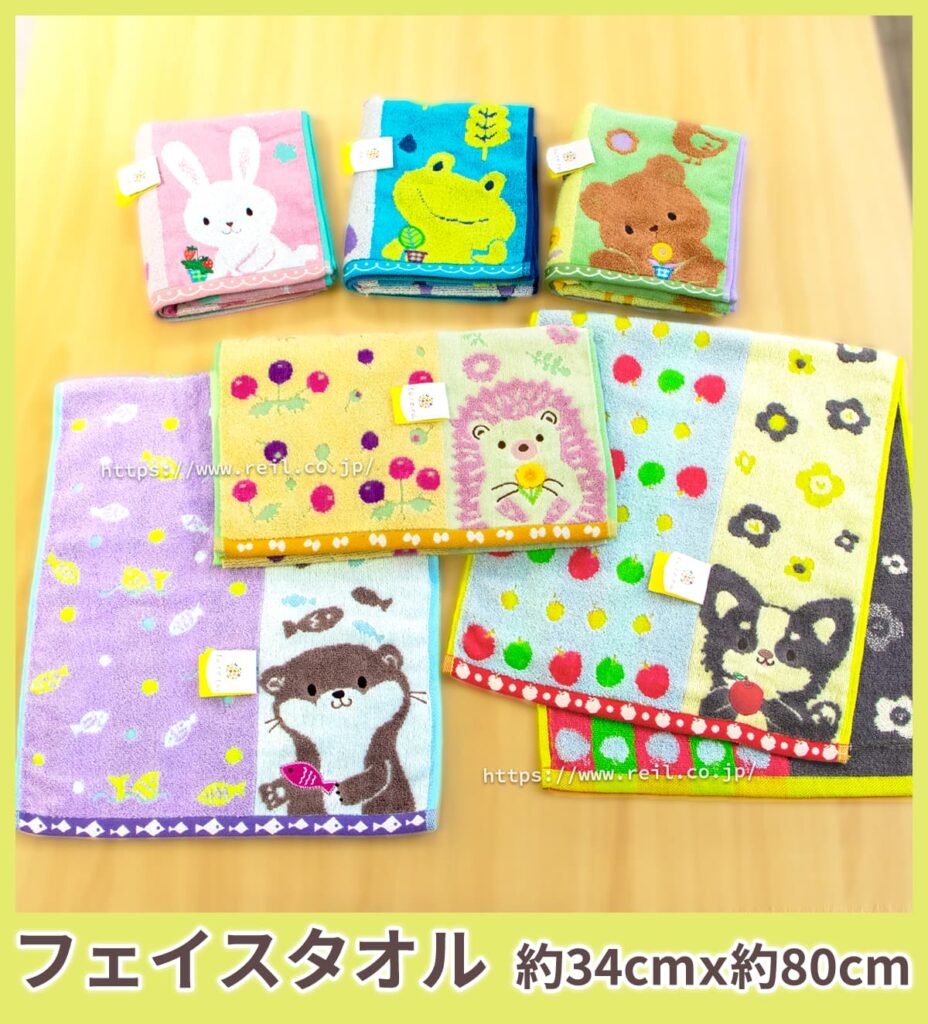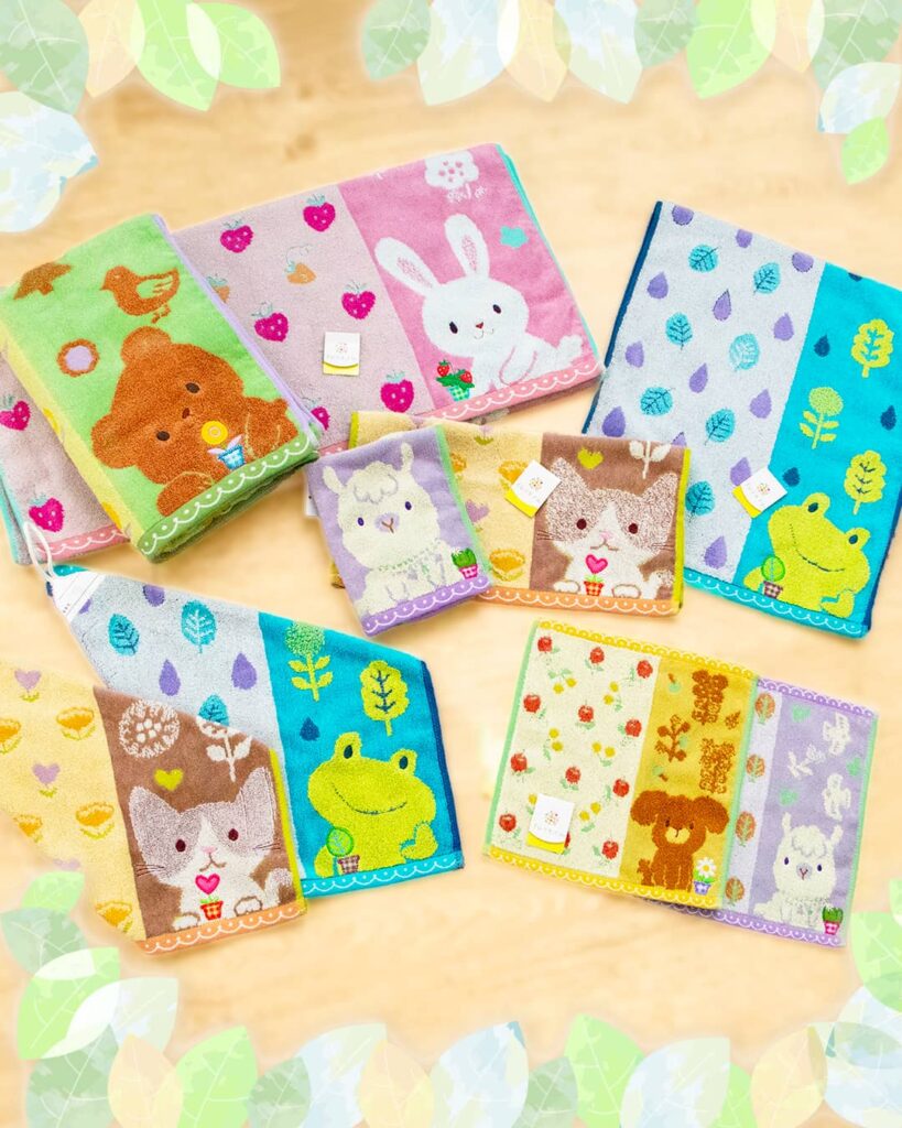 綿100%の心地よい肌触り、可愛い動物キャラクターのタオルシリーズです。