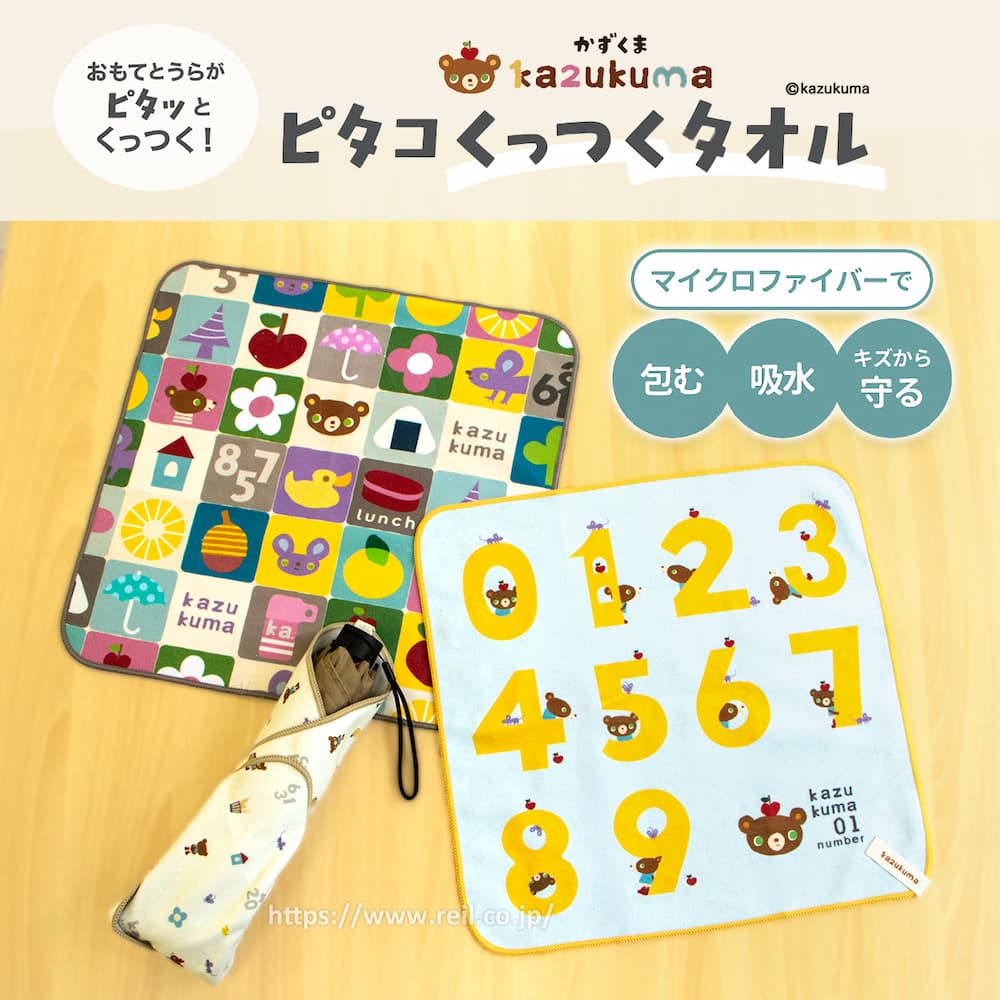 かずくま ピタコくっつくタオル はこちらで販売しております。